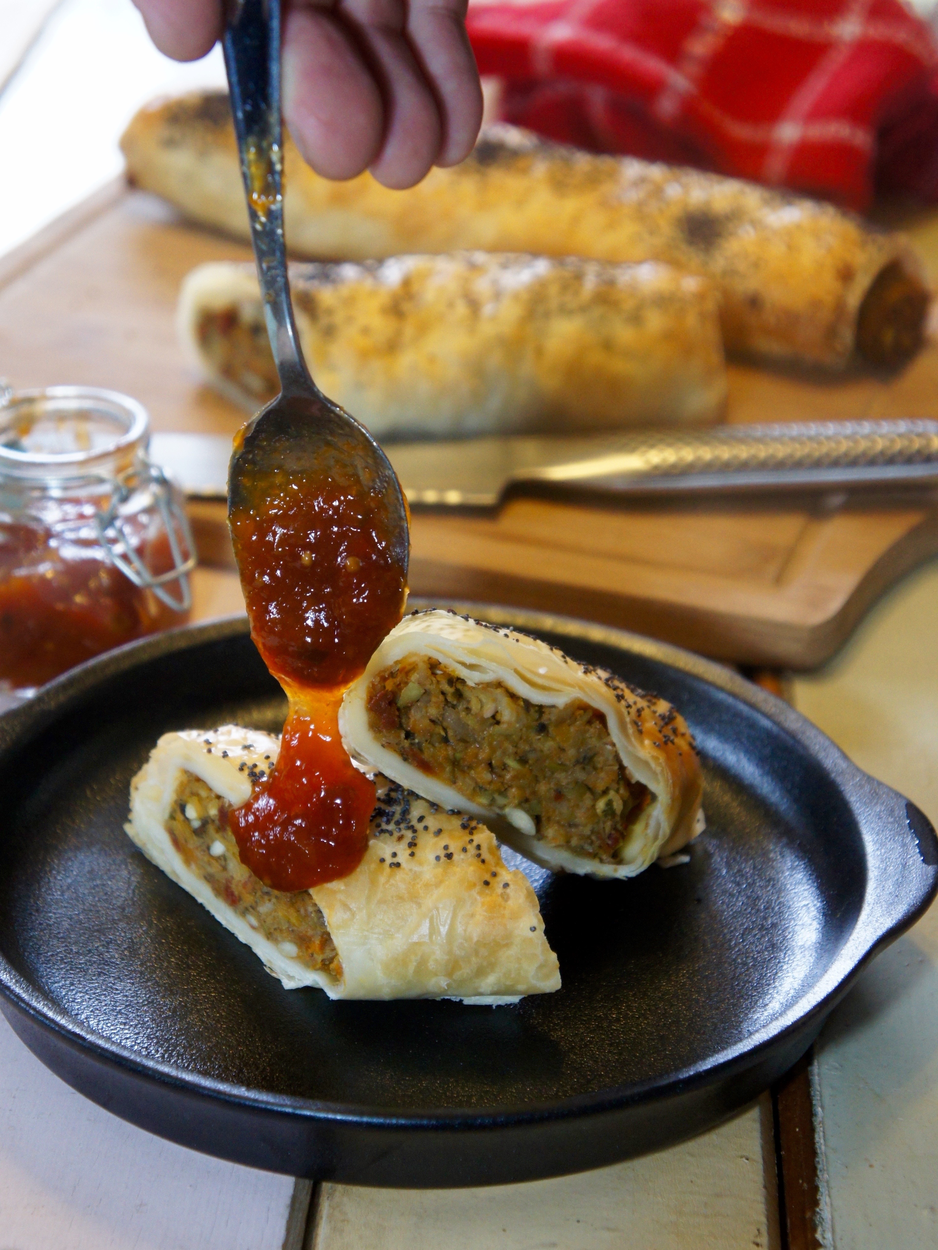 “I love recipes that you can cook in bulk, freeze then whip out for a quick mid-week meal. I always have containers of Bolognese, chilli con carne and pesto in my freezer and also this super easy roast tomato and capsicum sauce. Â It all bakes in one tray then gets blitzed up for later use. Â I’ve also included a few recipes I make using the sauce. Enjoy”